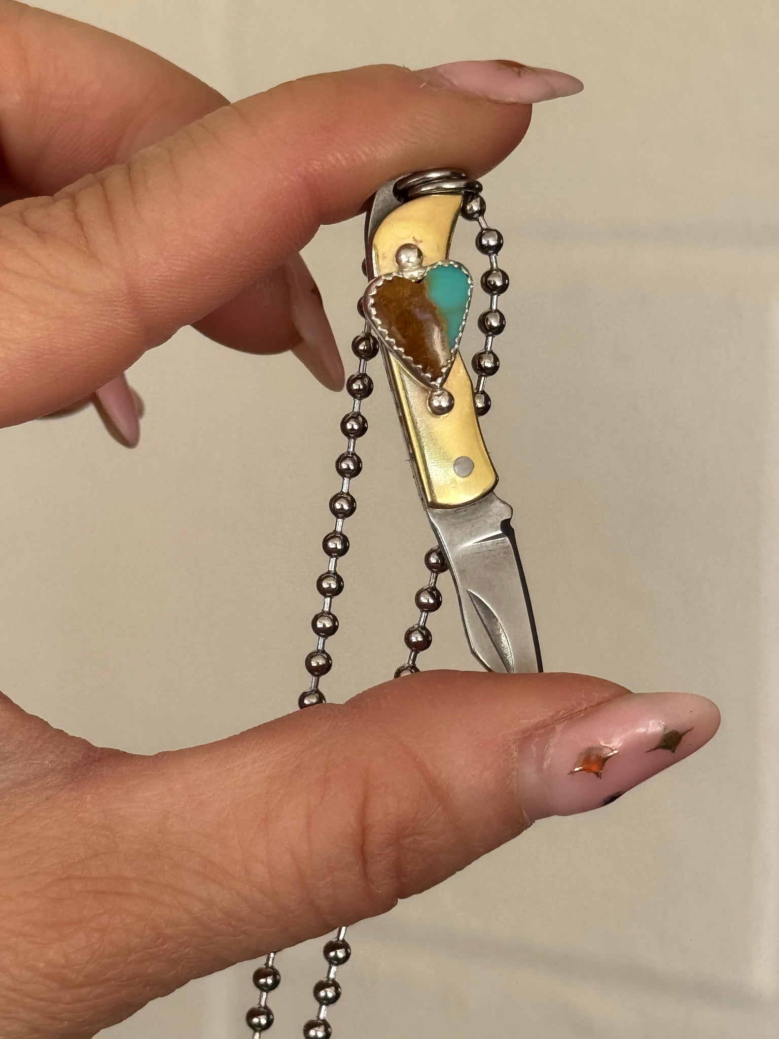 Kingman Turquoise heart on a mini pocket knife, it’s sharp and not advised for children. 🥲❣️