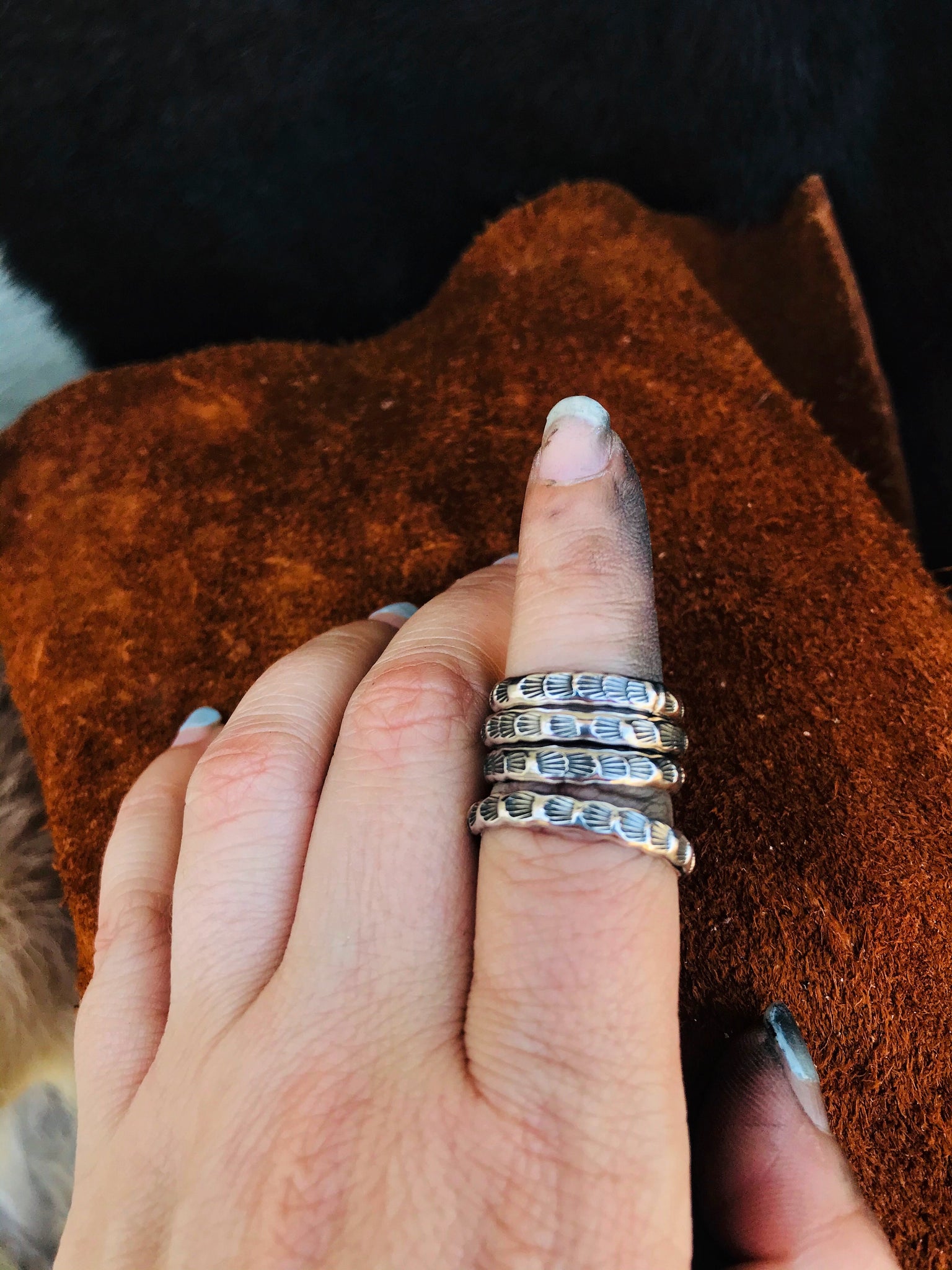 Silver Stamped Stacker Rings